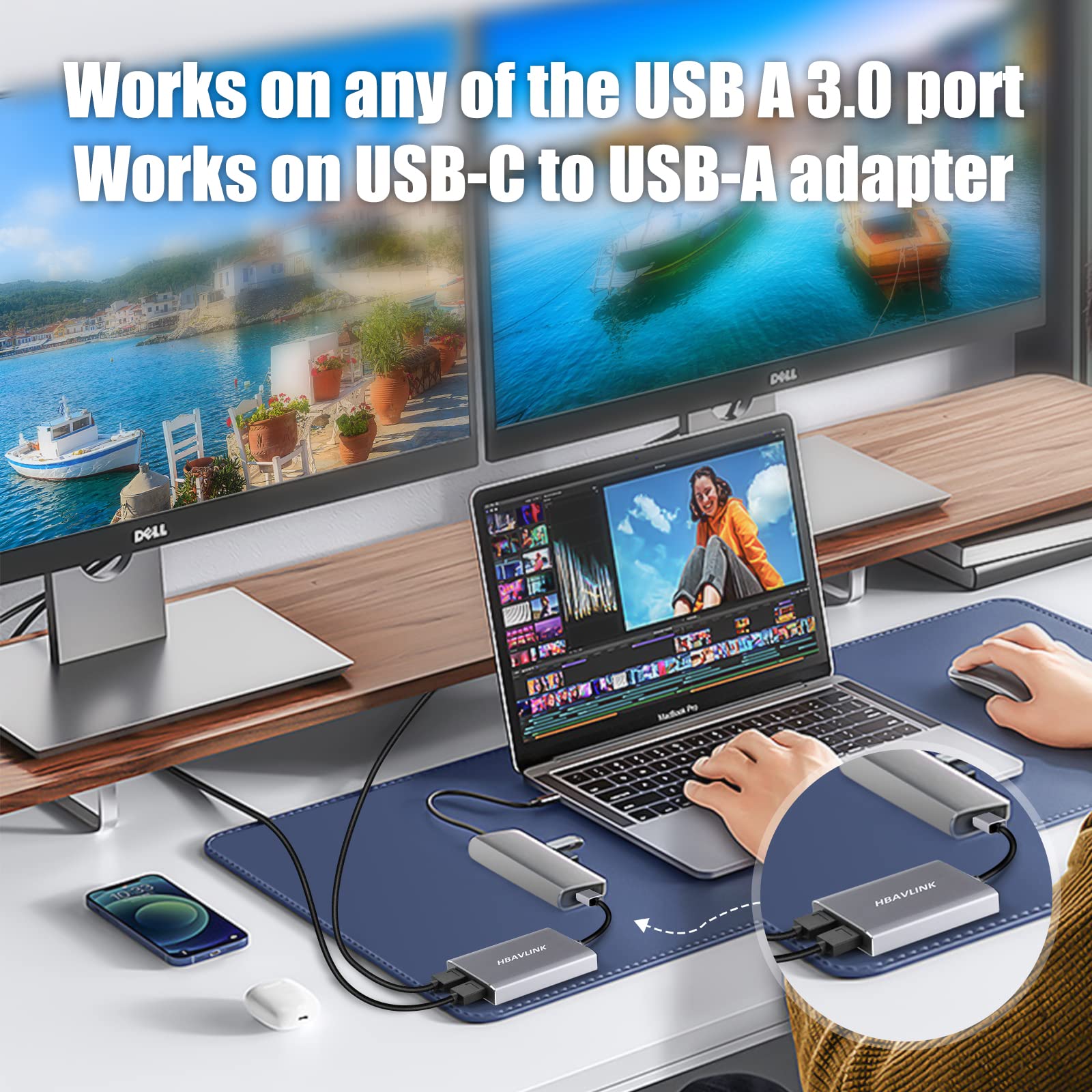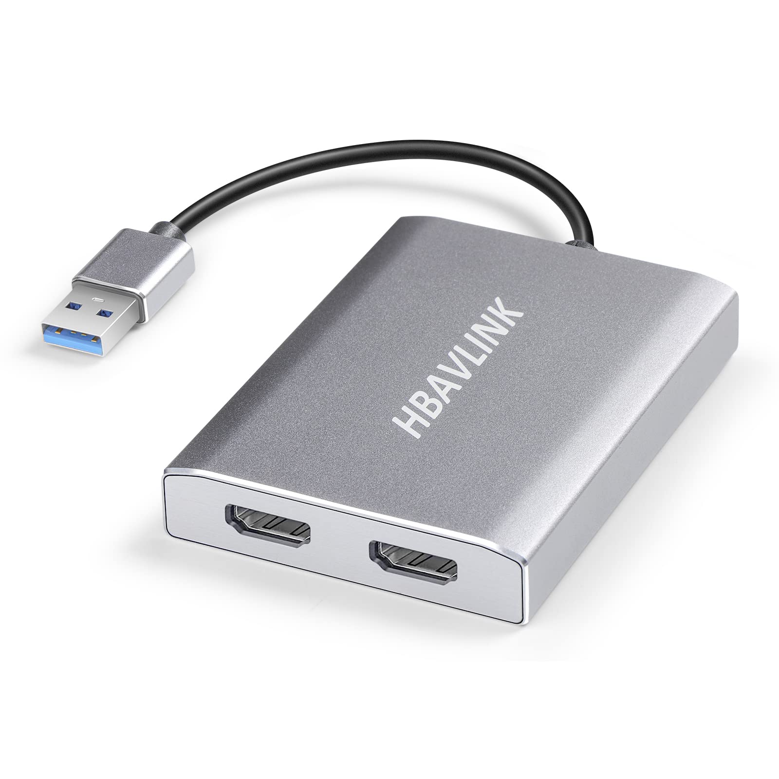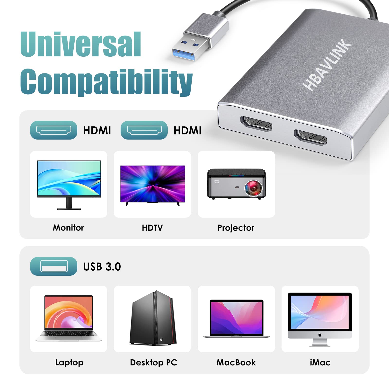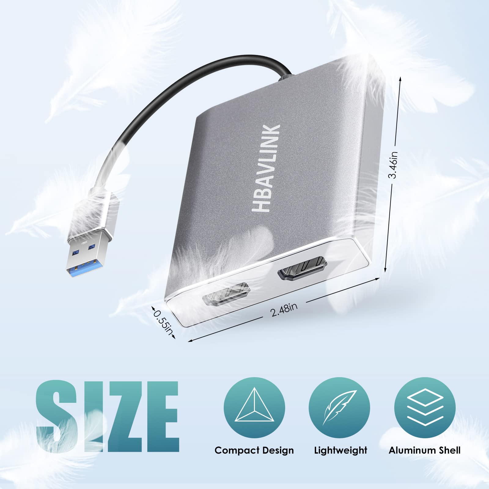 HBAVLINK USB 3.0 to Dual HDMI Adapter, Supports 4K@30Hz & 1080P@60Hz, Compatible with Windows & Mac OS Devices