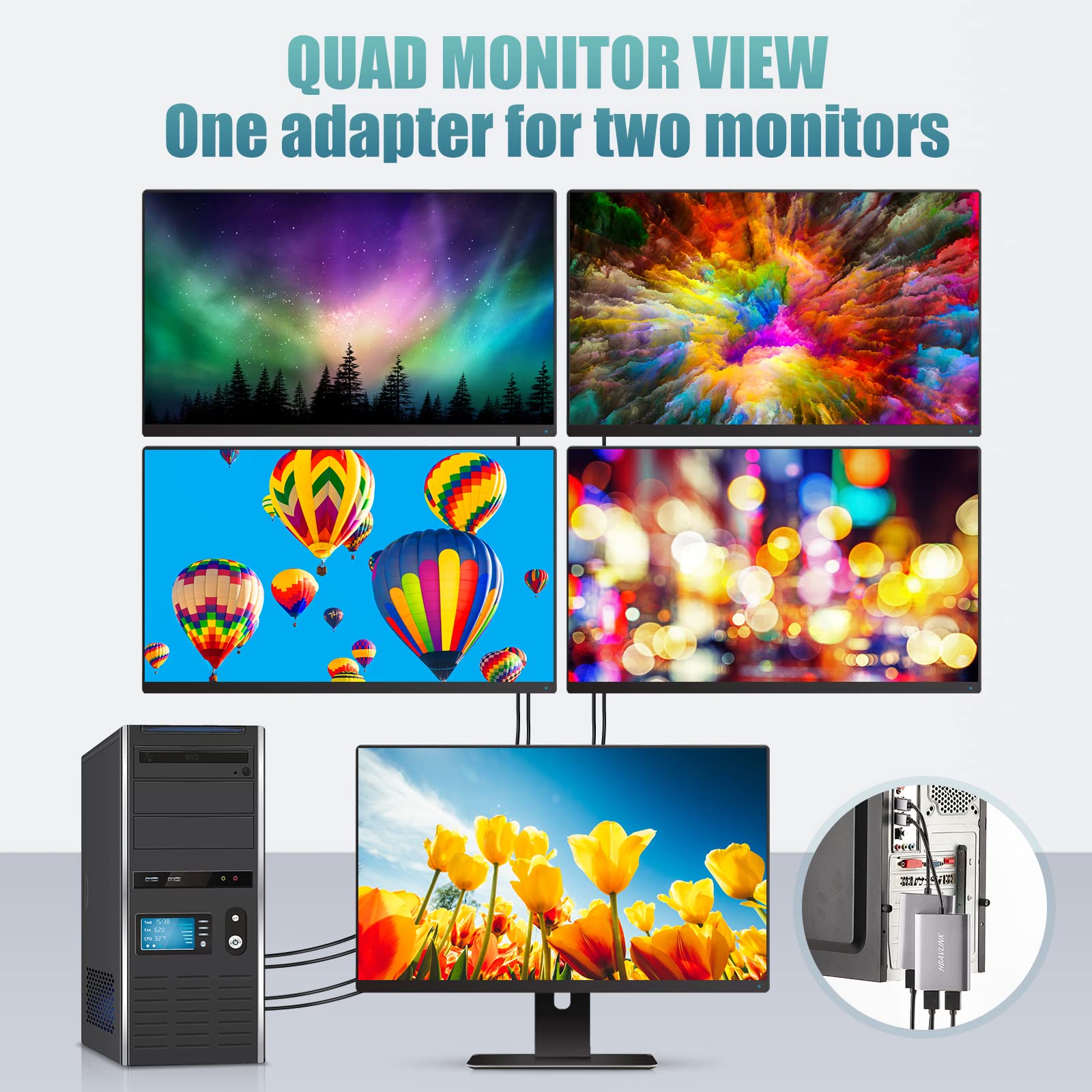 - 【multi monitors supported】One adapter for 2 monitors, two adapters for 4 monitors, idea multi monitors adapter for data analysis, stock market analysis, and other scenarios which need multi monitors.