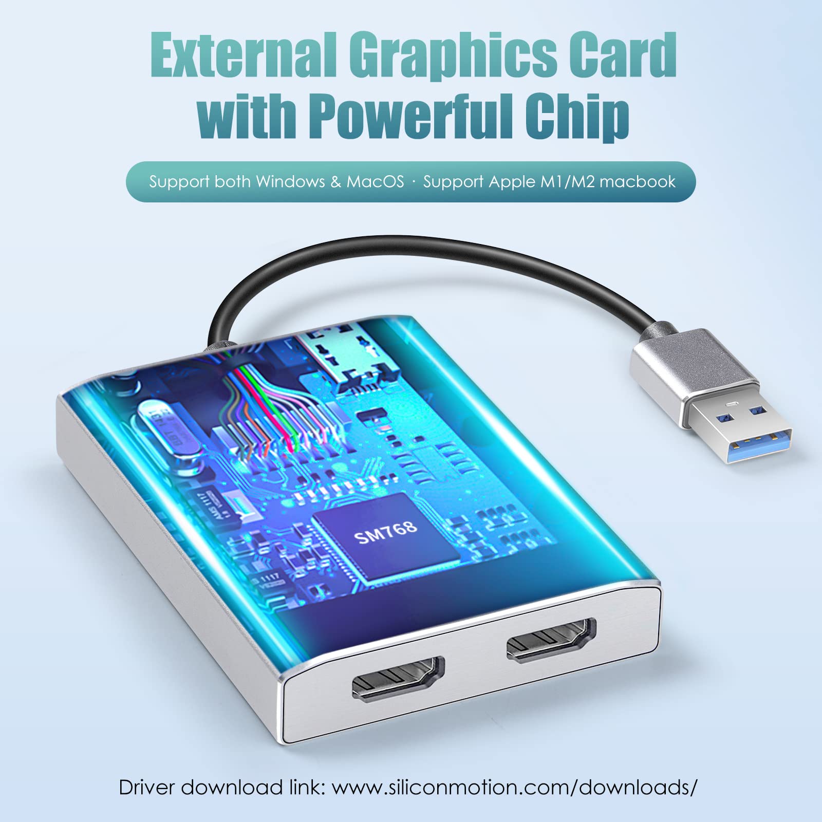 Computer external graphics card for dual monitors extended display for Windows & MacOS