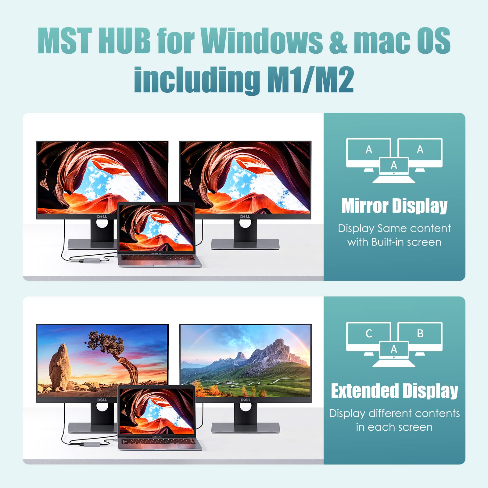 this usb 3.0 to dual hdmi adatper is an usb to hdmi splitter extended display adapter for your needs, support both SST and MST mode.