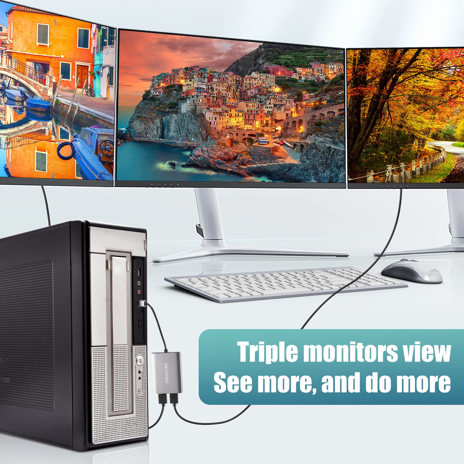 - 【usb 3.0 adapter for desktop pc】Using USB A 3.0 as the connector, no matter what kind of laptop/desktop, just check if the computer is come with USB 3.0(Type A) port, then this usb 3.0 to dual hdmi adapter for 2 monitors is compatible with your devices. An ideal dual monitor adapter for your desktop pc and laptop. Supported Windows OS: Win7/8.1/10/11. Plug & Play for windows.